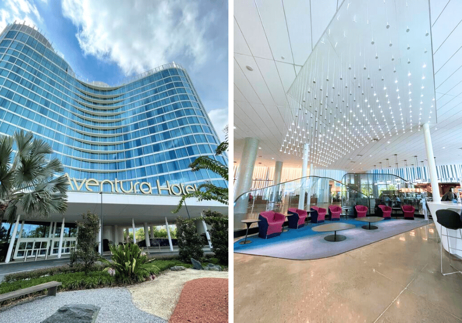 Theme and Atmosphere: Aventura Hotel has a sleek, modern design with a focus on contemporary style and technology.