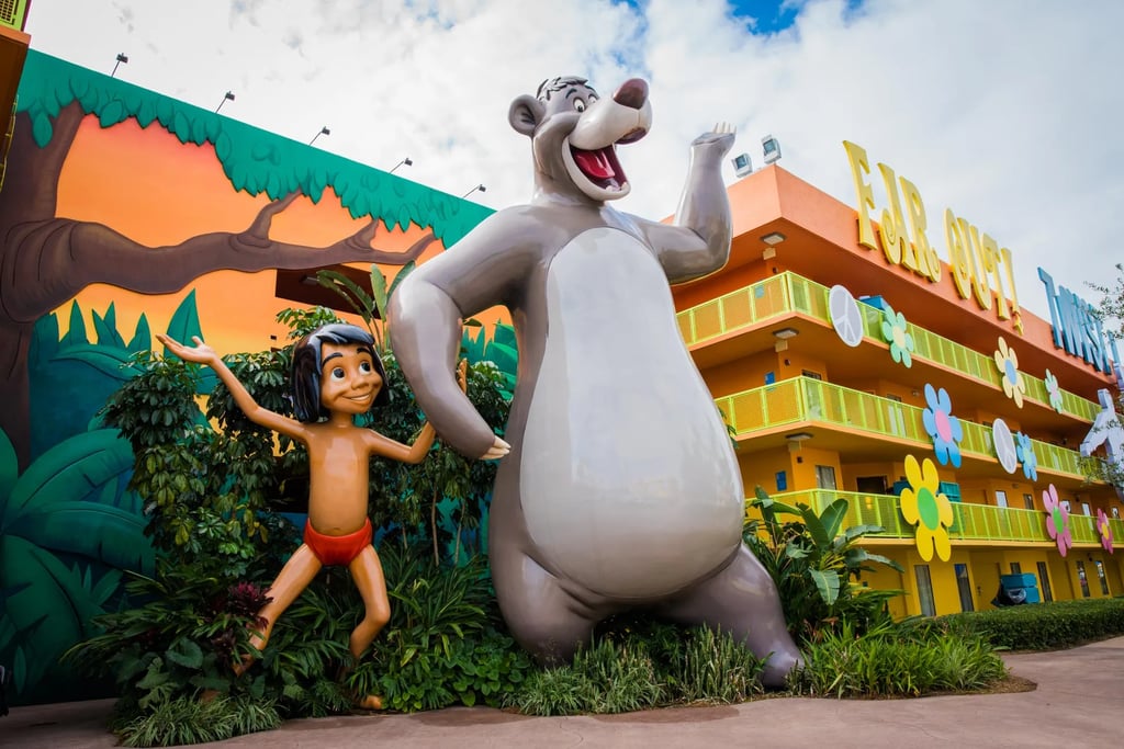 As a 90’s baby, I am well acquainted with nostalgia, and looking at the past fondly. If you’re anything like me, and enjoy a great blast from the past, then Disney’s Pop Century Resort might be perfect for you. This Value Resort is dedicated to fun pop culture highlights from the 1950s to the 1990s. Value Resorts have smaller rooms, but what the Pop Century lacks in square footage, they make up for in creative room configuration. The rooms sleep four and have one queen bed, and then a queen Murphy bed, that folds up into a table – the ultimate space saver! Cool off at the Hippy Dippy Pool, a groovy good time themed after the 1960s. There are two more pools at this resort, including a bowling-themed pool in the 1950s section, and a 1990s computer pool. Head to Everything POP Shopping & Dining for a souvenir and a bite to eat. My favorite thing to get here is the tie-dye cheesecake, which isn’t just delicious, but perfect for those Instagram moments! The resort has one dedicated bus stop if you’re heading to The Magic Kingdom or The Animal Kingdom, and Skyliner access – after a quick transfer at the Caribbean Beach Resort, you’ll be a short flight away from EPCOT or Hollywood Studios!