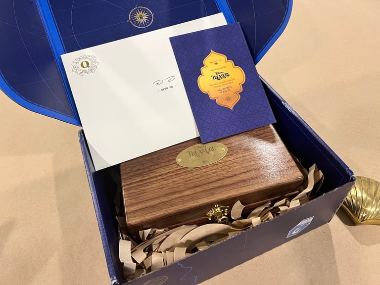 Inside the package is a beautiful locked wooden Treasure box and a letter from explorer Arthur Quinn, where he explains that he has stumbled upon something in his grandmother’s study that will lead us to a new adventure! He also gives a hint about how to open the Treasure box, which is a puzzle within itself!