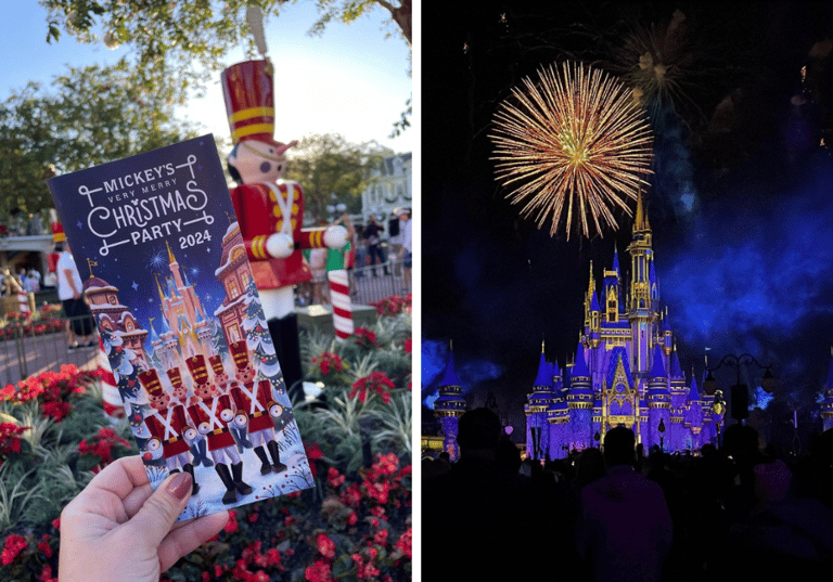 • Arrive early! Guests for Mickey’s Very Merry Christmas Party can enter Magic Kingdom as early as 4:00 p.m., even though the party officially begins at 7:00. That gives you extra time to grab a bite, ride a few attractions, or soak in the holiday atmosphere before the festivities begin.
