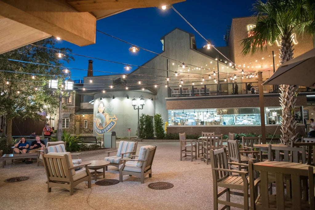 If I was going to have a kids-free date night at Disney Springs, The Edison would be my top pick. This restaurant and entertainment center is inspired by the 1920s – the gothic decor and ambiance make you feel like you’ve dropped back into a club during the time of Gatsby. After 10 pm, this spot turns into a club, complete with a swinging big band, dancers, and a dance floor. When we were there, we enjoyed 1920s-style covers of modern music and hours of dancing. For dinner, don’t miss some of the more fun menu items, including the Clothesline Bacon (yes, it actually comes on a clothesline!) or the Electri-Fries, which is the loaded cheese fries of my dreams. They also have an incredible cocktail menu, so you can enjoy some adult beverages on your night out. The champagne-based cocktail, ‘He Went To Paris’ is one of my favorites.