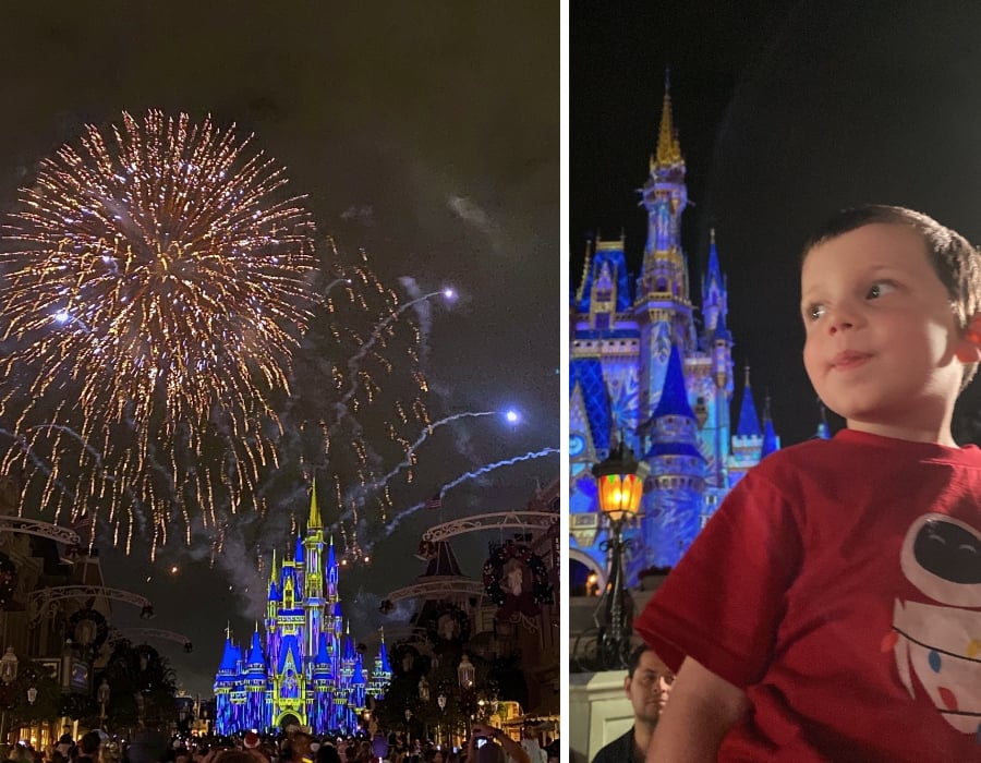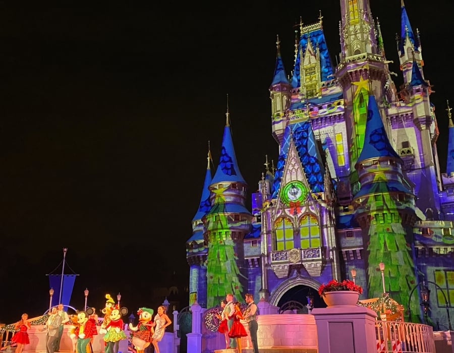 Our favorite leading lady, Minnie Mouse herself, takes the stage to start your jingle journey through many favorite classic carols, while the castle comes alive with the holiday spirit and “dances along.” It wouldn’t be Magic Kingdom without a heart-stopping fireworks display to go with it! Every time we got a “big boomer” as we lovingly call the big fireworks, my son would yell “WOAH!” at the top of his lungs. I don’t care how old you are, seeing fireworks over Cinderella Castle at any time of the year is impressive every single time.