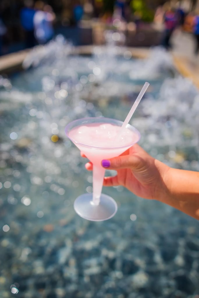 The La Vie en Rose isn’t just my favorite cocktail at the festival – it’s my favorite cocktail in the WORLD. Plus, as temperatures start to rise in Orlando, it’s the perfect cold and slushy drink to help you cool down. Located at the Fleur de Lys booth in the France pavilion, this drink has devoted fans who wait every year for its return. My favorite way to enjoy one is by taking it over to the fountain near Le Chefs de France and sipping it slowly while people-watching!