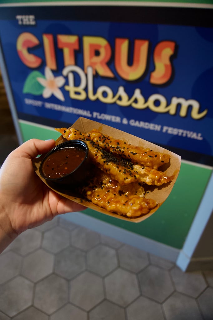 If you’re looking for a dish that is large enough to be a light meal, the Orange Sesame Tempura Shrimp is perfect. It’s an indoor booth, called The Citrus Blossom, and located at the old Odyssey Pavilion. This dish reminded us of an elevated orange chicken, reimagined as a tempura shrimp dish. As a bonus, since the booth is indoors, you’ll be able to enjoy your snack with some much-appreciated air conditioning!