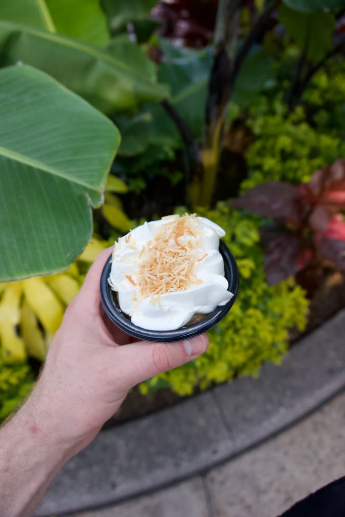 You’ll find La Isla Fresca between the France and Morocco Pavilion, next to the Miss Piggy Topiary. I think I will be having recurring dreams about this Coconut Tres Leches cake. This dessert was shockingly good. Our whole party was so excited to find a dessert that wasn’t too sweet, or too rich, and was light enough to enjoy on a hot day. This is also a really large portion, and can easily be shared!