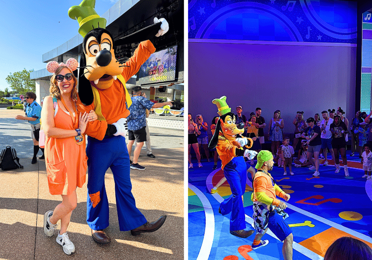 EPCOT – Goofy has taken over CommuniCore Hall! Head inside for a fun DJ and games. Play games with Goofy like Loopy Limbo, Freeze Dance, and more! Only half the room is utilized at a time, so kids who just need to run can have some free space away from the games. There’s also lots of comfy seating for adults! This area is wide open so it’s easy to keep an eye on little ones while you take a load off your own feet!